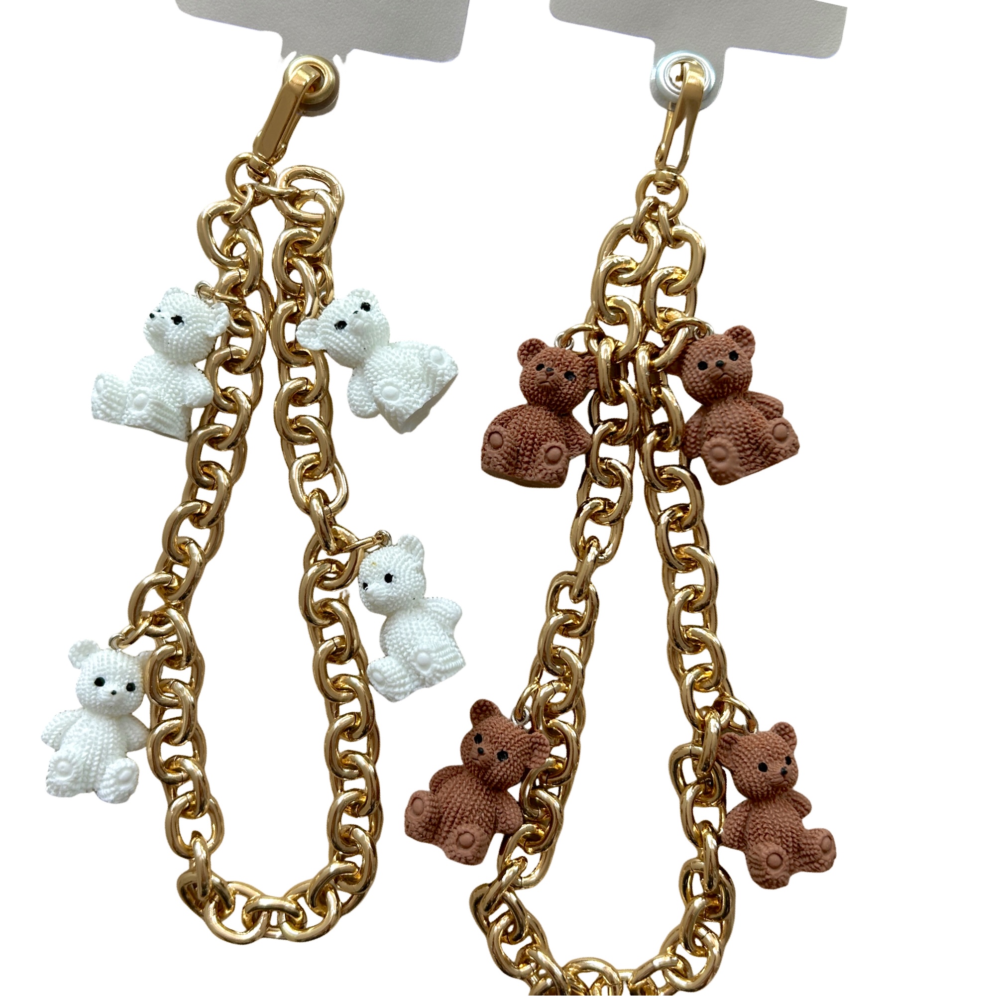 Alça de celular de mão , ou de corpo com pingentes de resina de urso.correntes de alumínio banhadas a ouro, que dão leveza a peça.