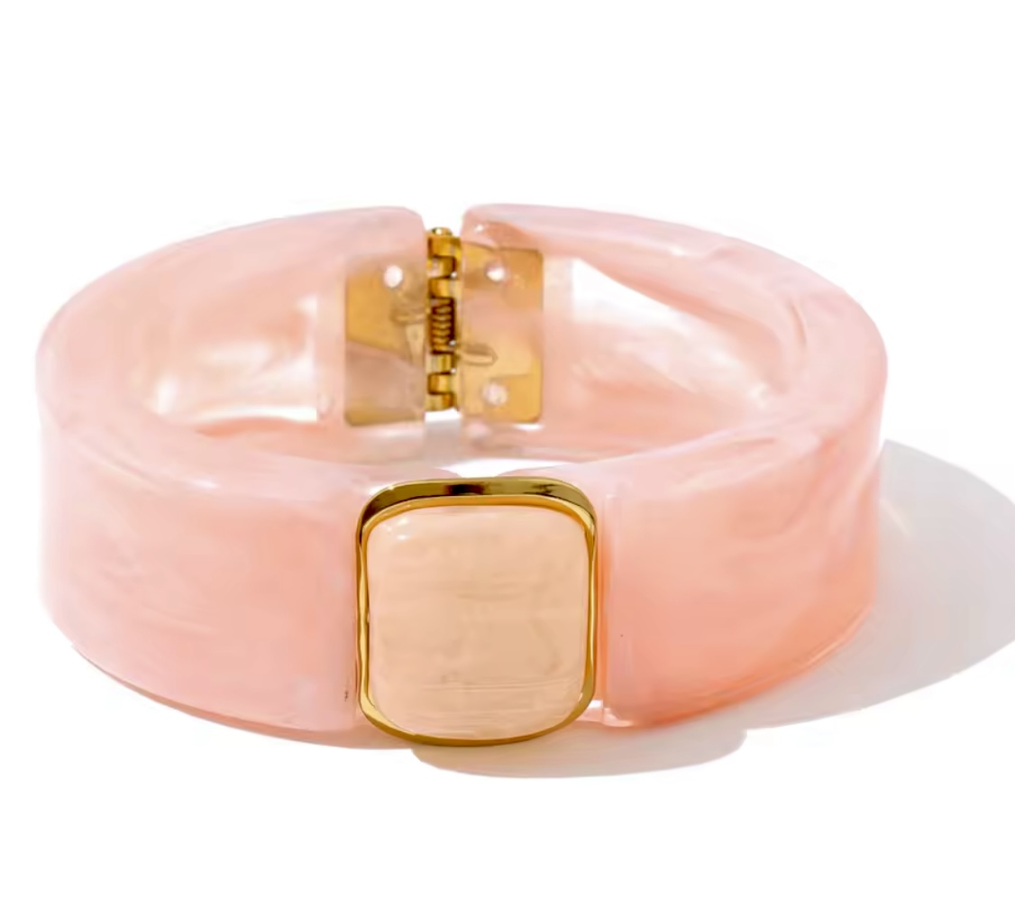 Bracelete de resina. Com detalhes em aço ouro vintage.