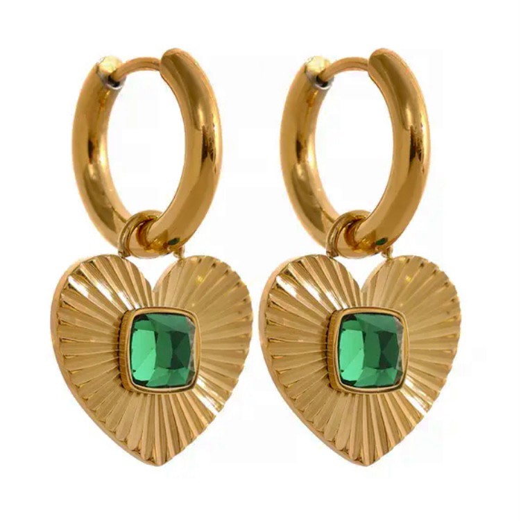 Brinco com banho de ouro 18k e pedra sintética verde.