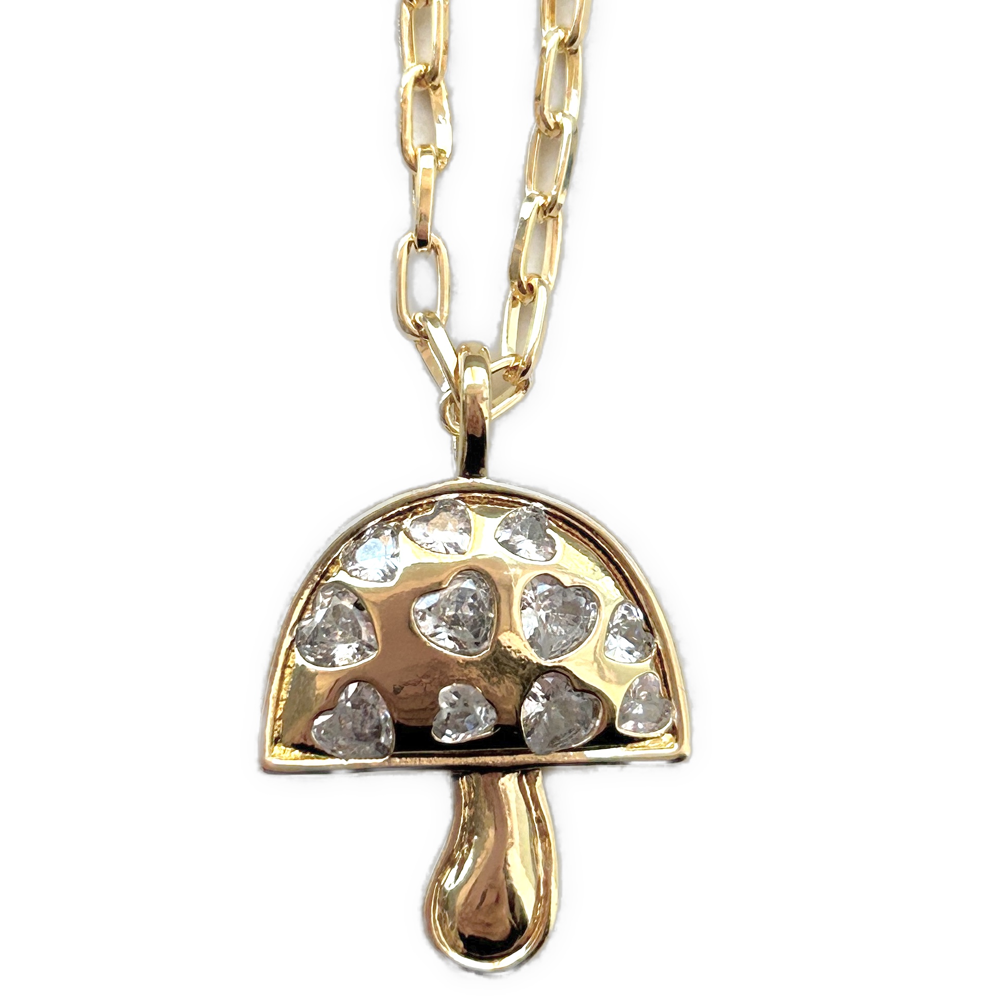 Colar com corrente mini Cartier folheada a ouro e pingente de cogumelo com zircônias .