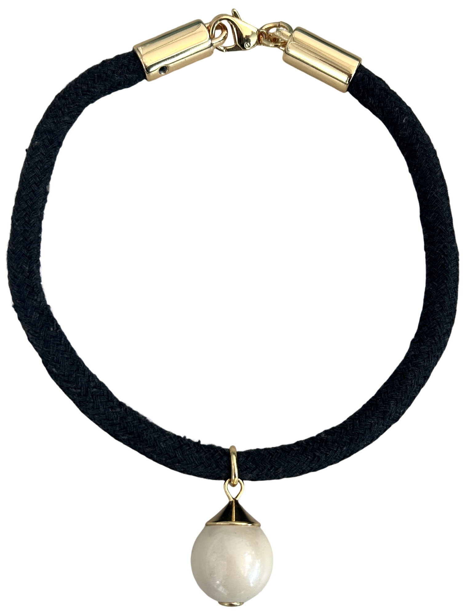 Colar de cordão grosso de algodão com pingente de bola de resina. Metais dourados com verniz italiano.