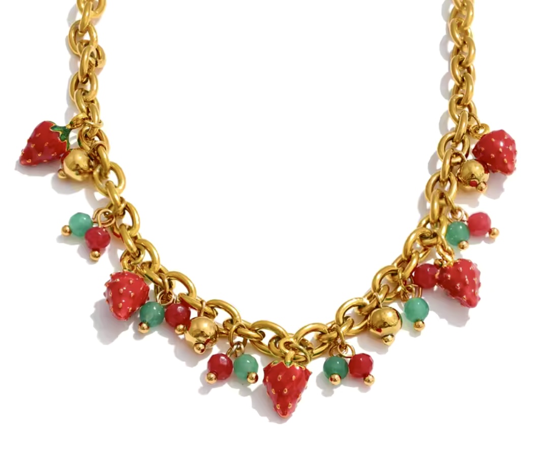 Colar com banho tom vintage e pingentes esmaltados s mini cristais.