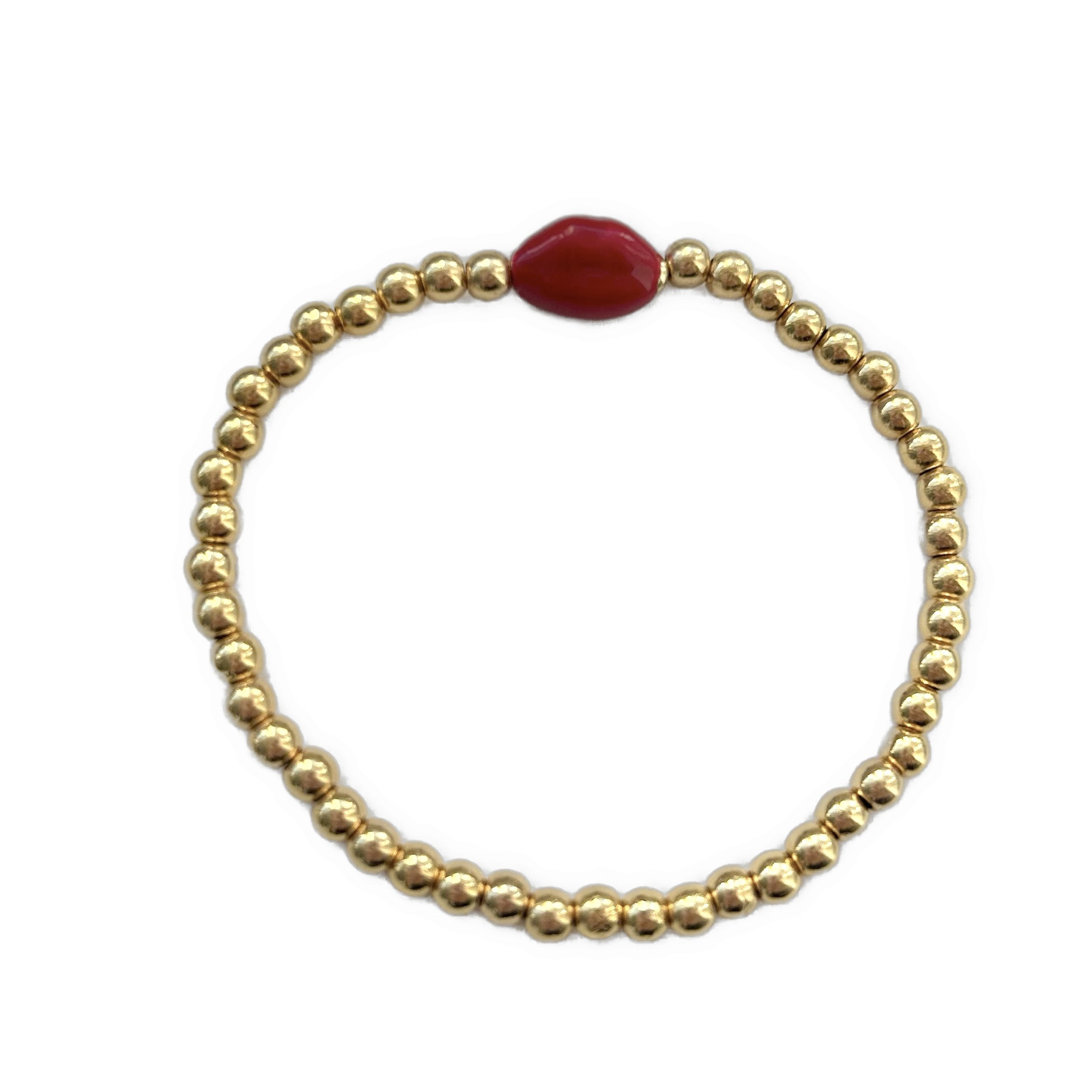 Pulseira de bolinhas banhada a ouro em fio de silicone, com boquinha esmaltada.